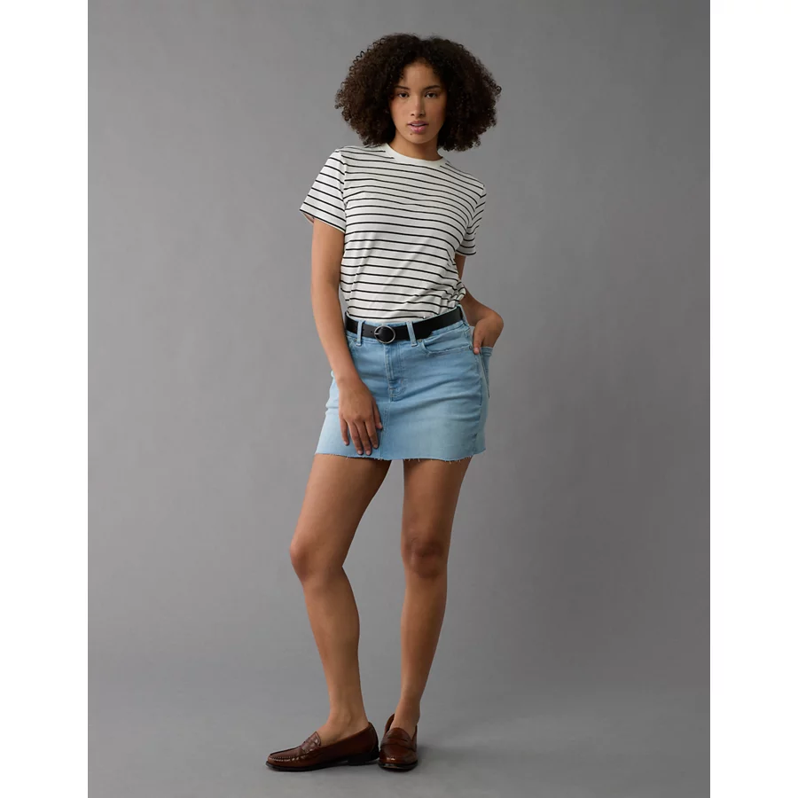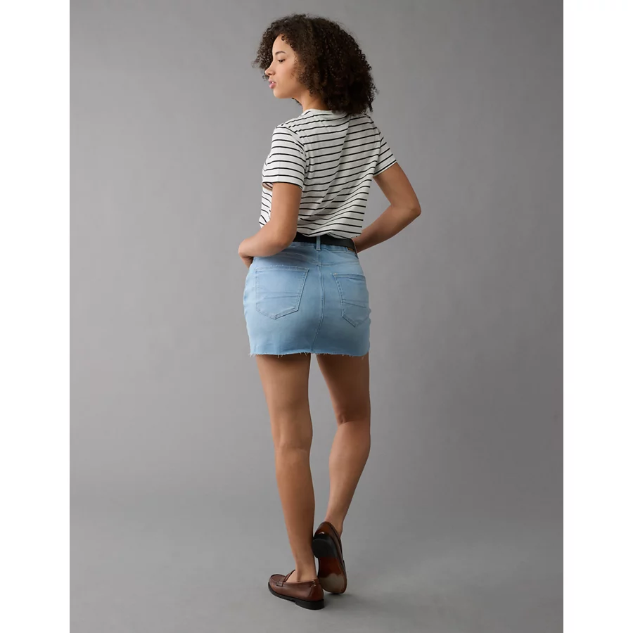 AE Next Level Curvy High-Waisted Denim Mini Skirt – Light Wash
