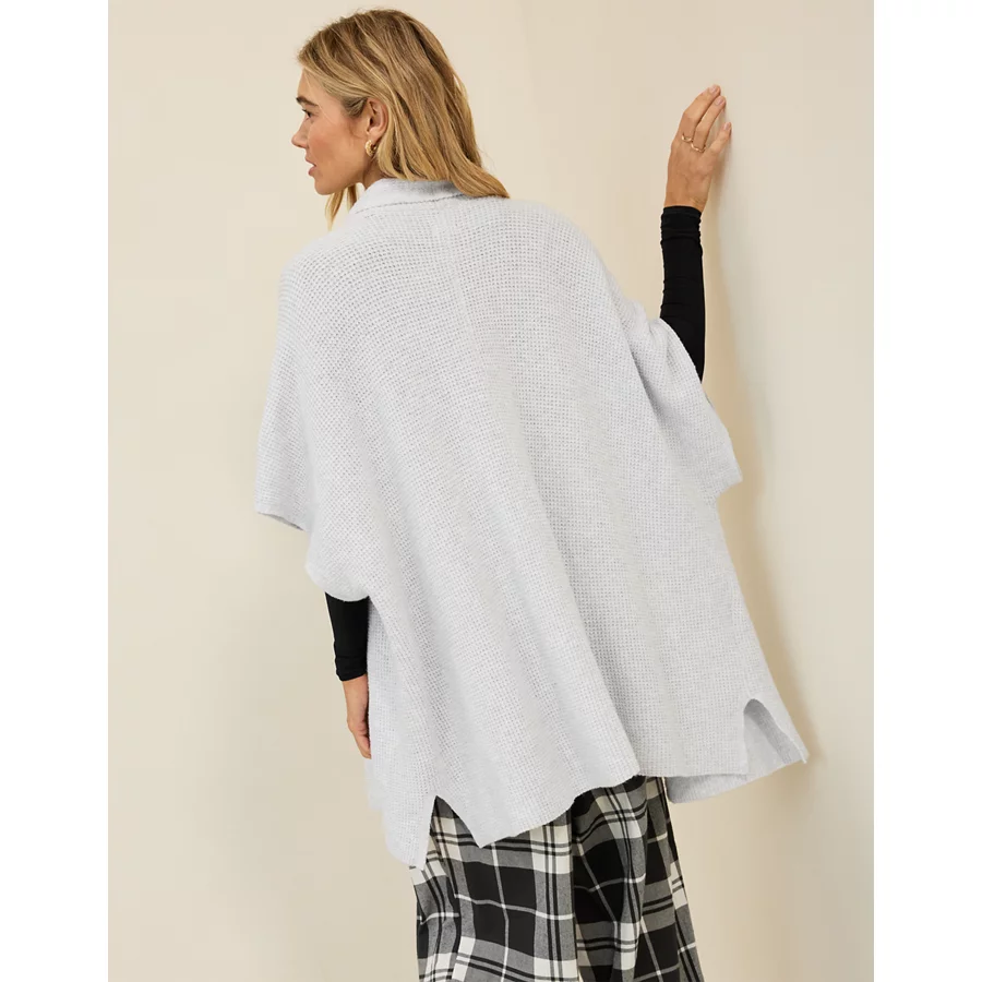 Aerie Waffle Shawl Cape – Light Heather Gray