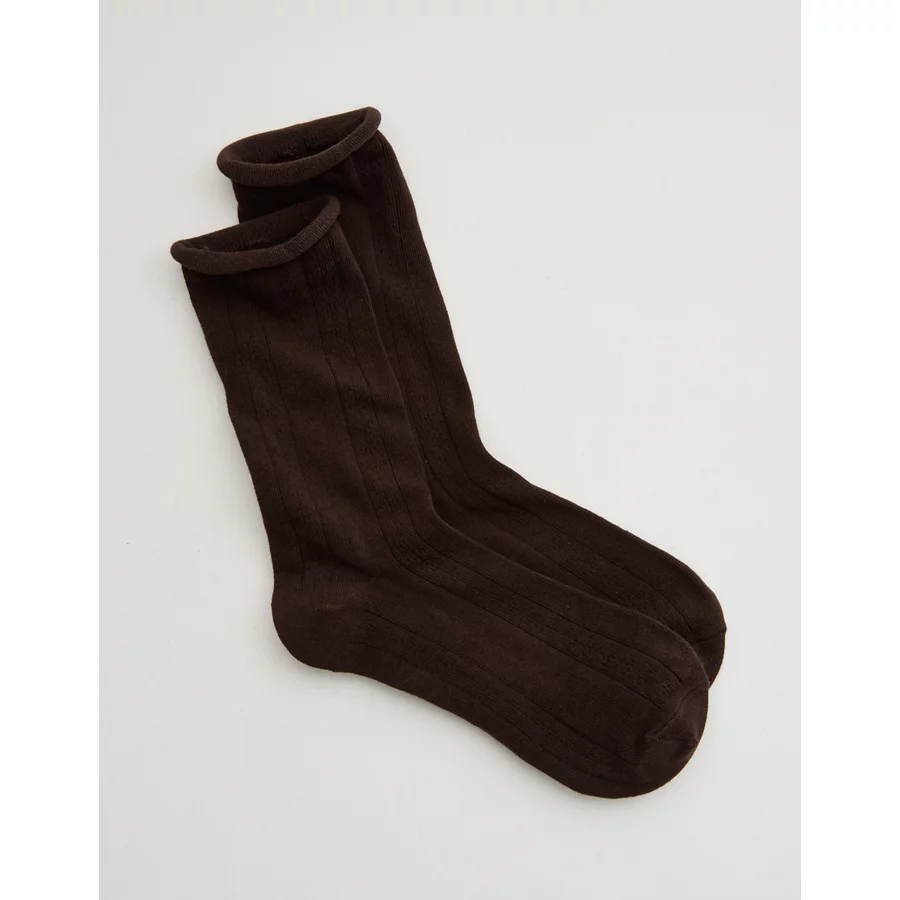 Aerie Knit Pointelle Crew Socks – Deep Earth