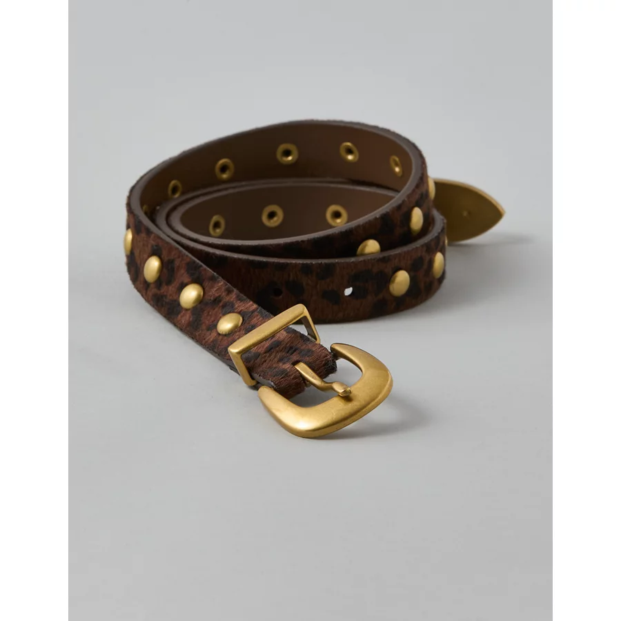 AE Leopard Print Studded Western Belt – Brown
