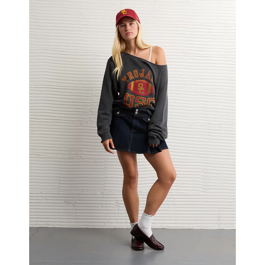 AE USC Trojans Graphic Off The Shoulder Sweatshirt – Black Wash