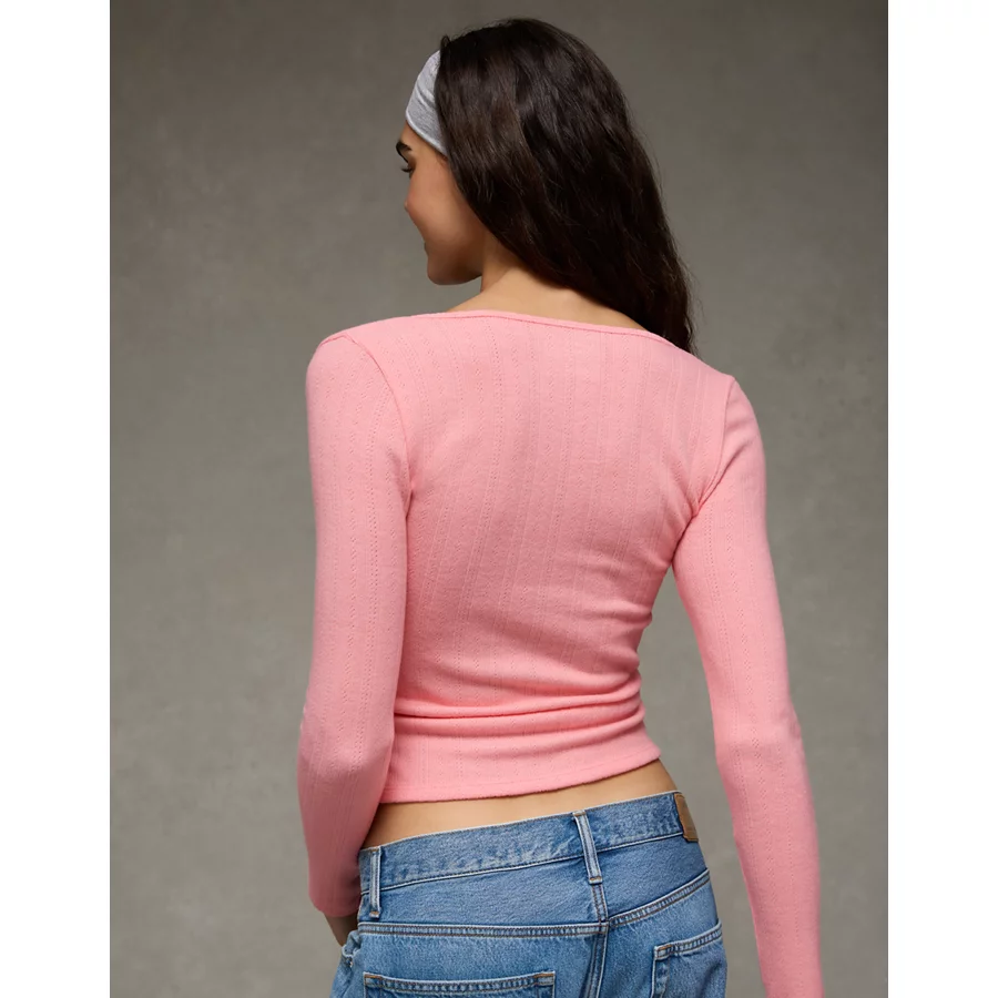 AE Long Sleeve Square Neck T-Shirt – Pink Note