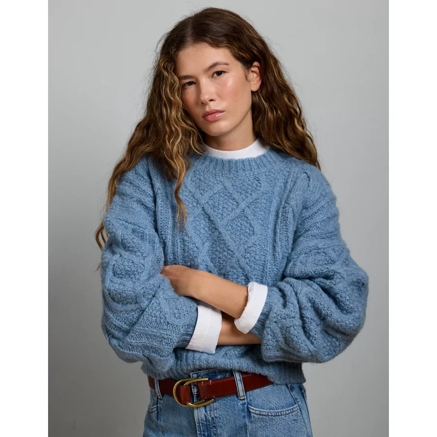 AE77 Premium Cable Sweater – Light Blue