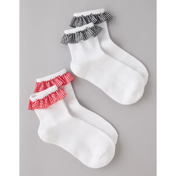 AE Gingham Ruffle Boyfriend Socks 2-Pack – White