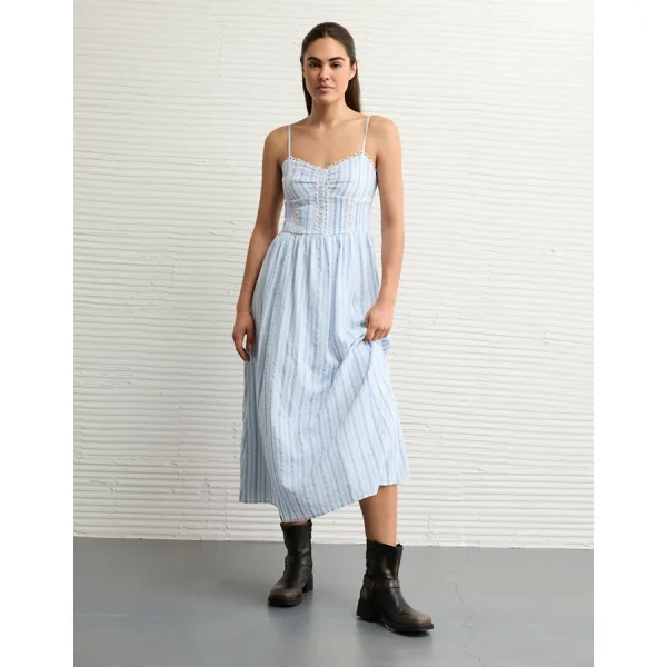 AE Corset Tie Strap Floral Midi Dress – Navy