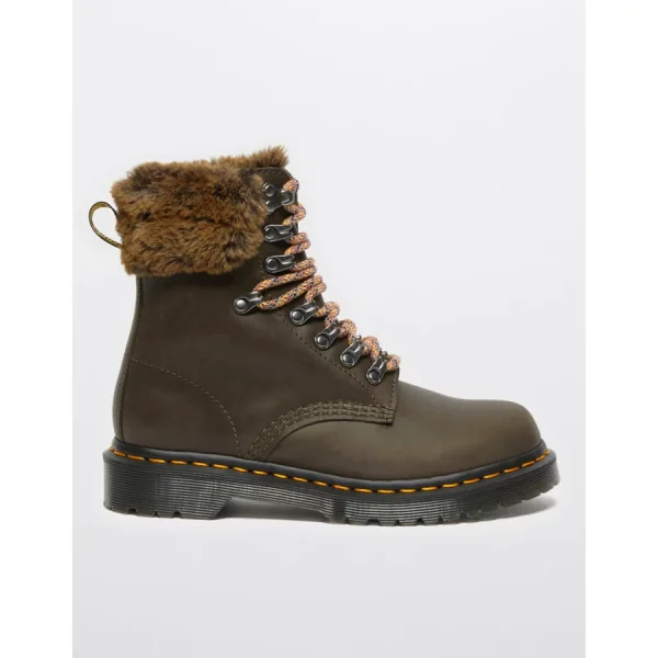 Leather upperOriginal 8-eye silhouetteFaux-fur collarDr. Martens air-cushioned soleClassic heel loop & yellow rapid stitchNot eligible for promotions | Only ships