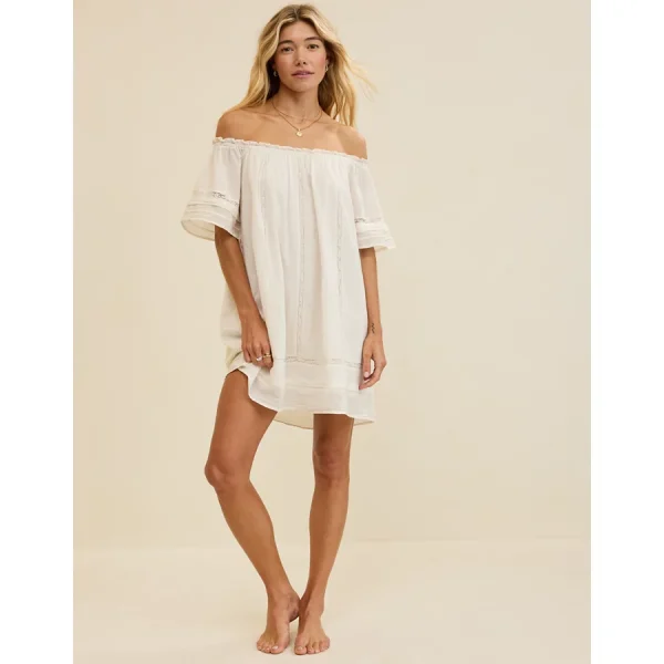 Soft, lightweight cottonOff-the-shoulder silhouetteLace detailingAccessibility deets: lightweight material for breathability & airflow!sectionName:The Details},material:{bullets:[100% CottonMachine washImported Mini length