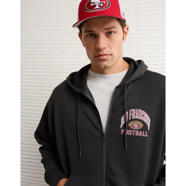 NFL San Francisco 49ers Graphic Zip-Up Hoodie – Washed Black