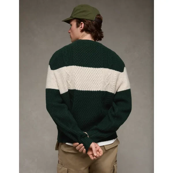 AE Cozy Cabin Chest Stripe Sweater – Pine