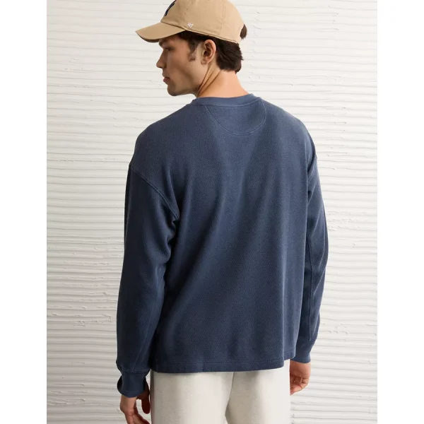 AE Boxy Washed Thermal Henley Shirt – Soft Blue
