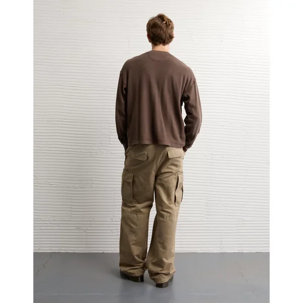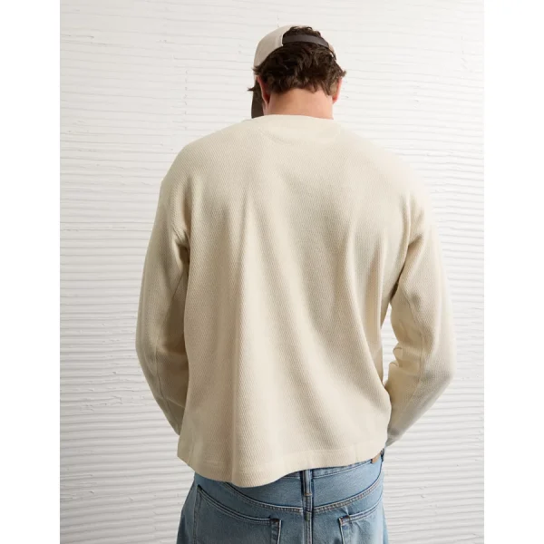 AE Boxy Washed Thermal Henley Shirt – Tan