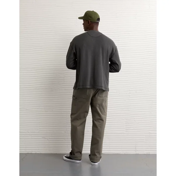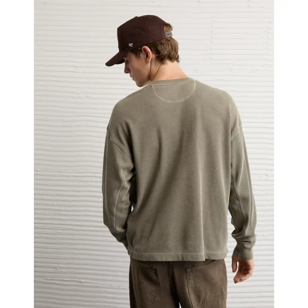AE Boxy Washed Thermal Henley Shirt – Olive