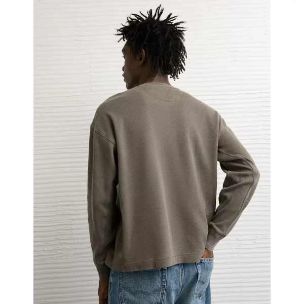 AE Boxy Washed Thermal Henley Shirt – Smoked Gray