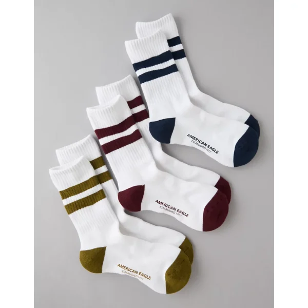 AE Striped Terry Crew Socks 3-Pack – White