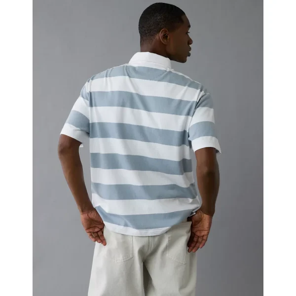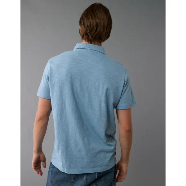 Super soft pique with stretchCollared neck with polo button placketSmall embroidered eagle logoThis is Real Good: Made with the planet