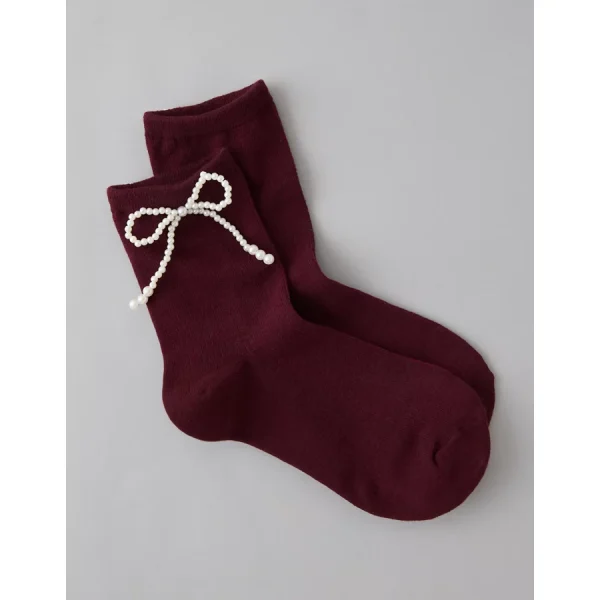 AE Pearl Bow Cropped Crew Socks – Preppy Red