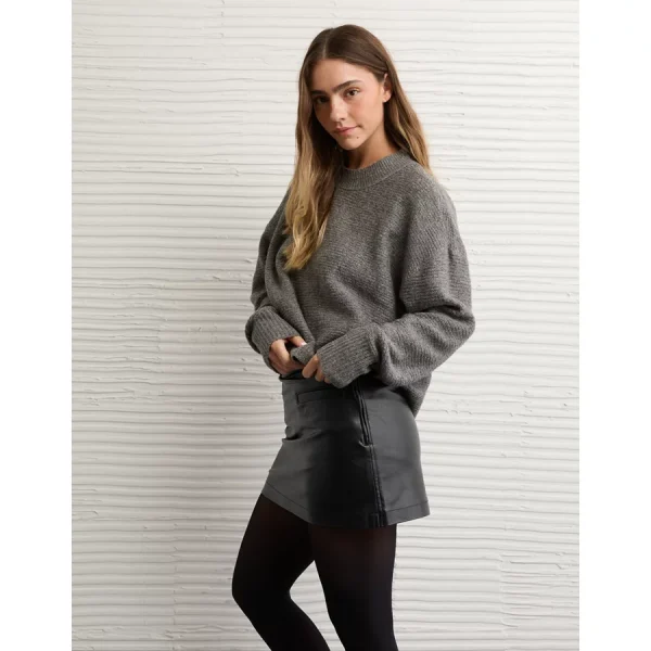 AE Mid-Rise Vegan Leather Skort – Black