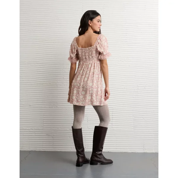 AE Pointelle Puff Sleeve Mini Dress – Brown