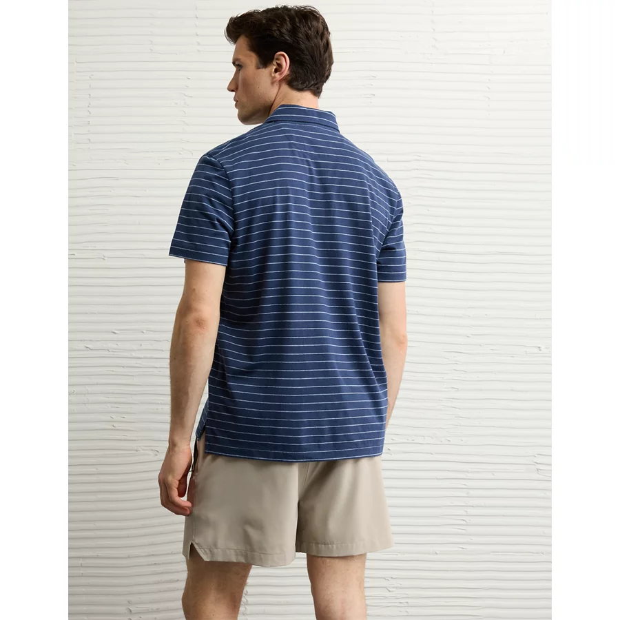 AE 24/7 Club Logo Striped Polo Shirt - Blue