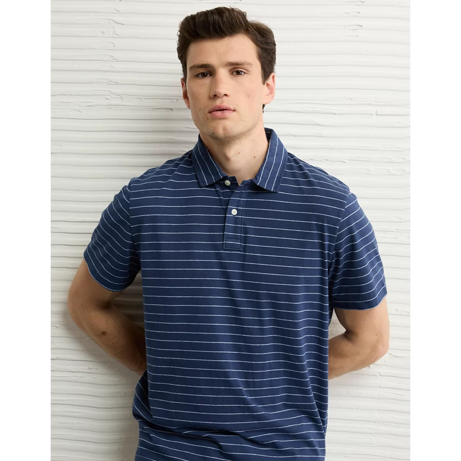 AE 24/7 Club Logo Striped Polo Shirt – Dark Blue