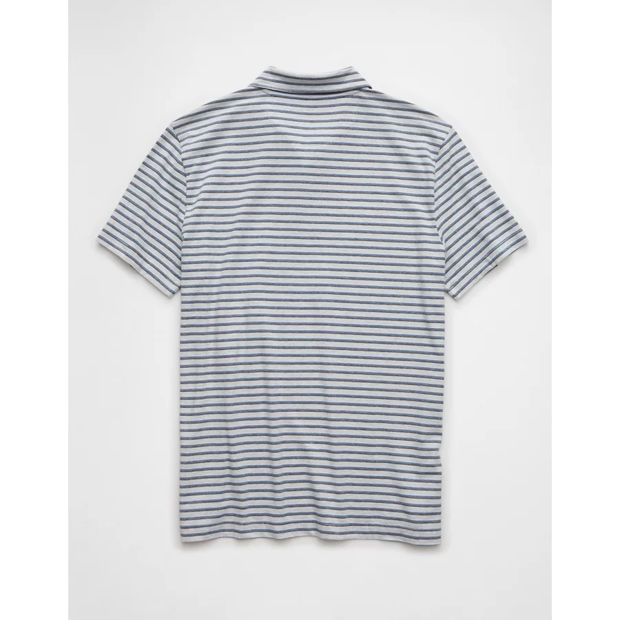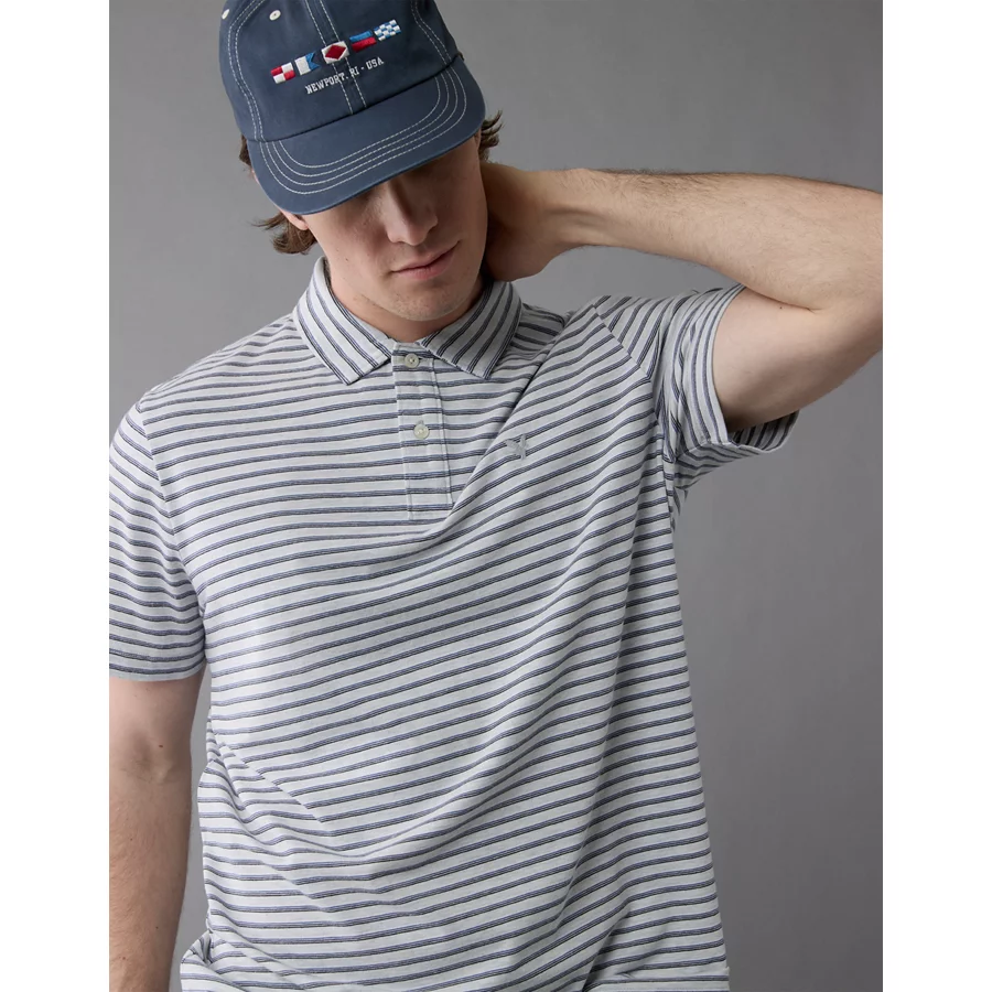 AE 24/7 Club Logo Striped Polo Shirt – Gray