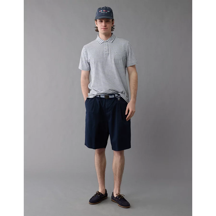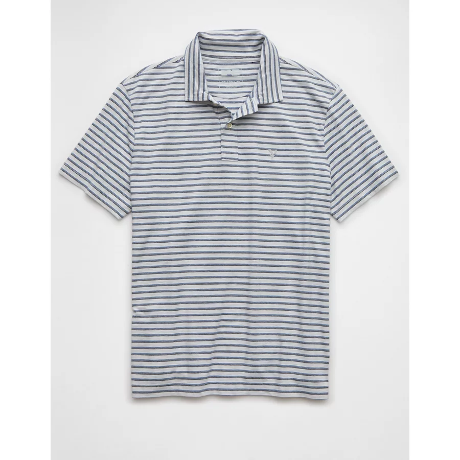 Super soft jersey with added stretchPolo collar with button placketEagle logoStripesThis is Real Good: Made with the planet in mind