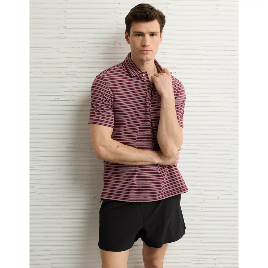 AE 24/7 Club Logo Striped Polo Shirt – Red