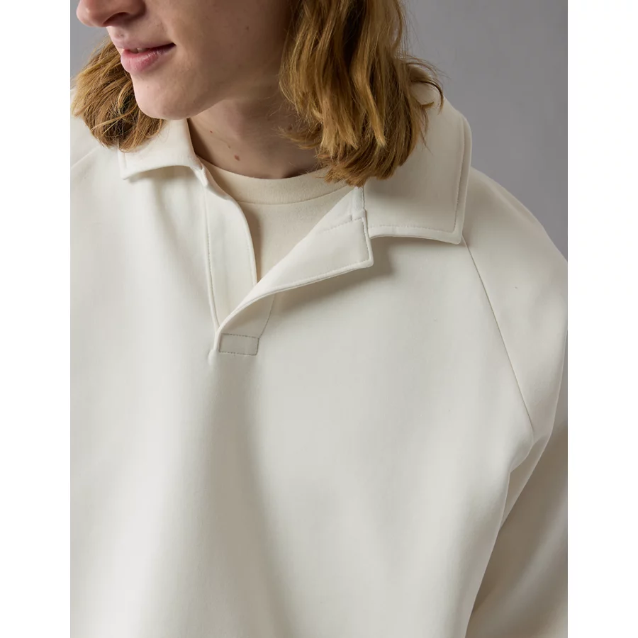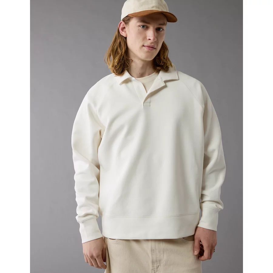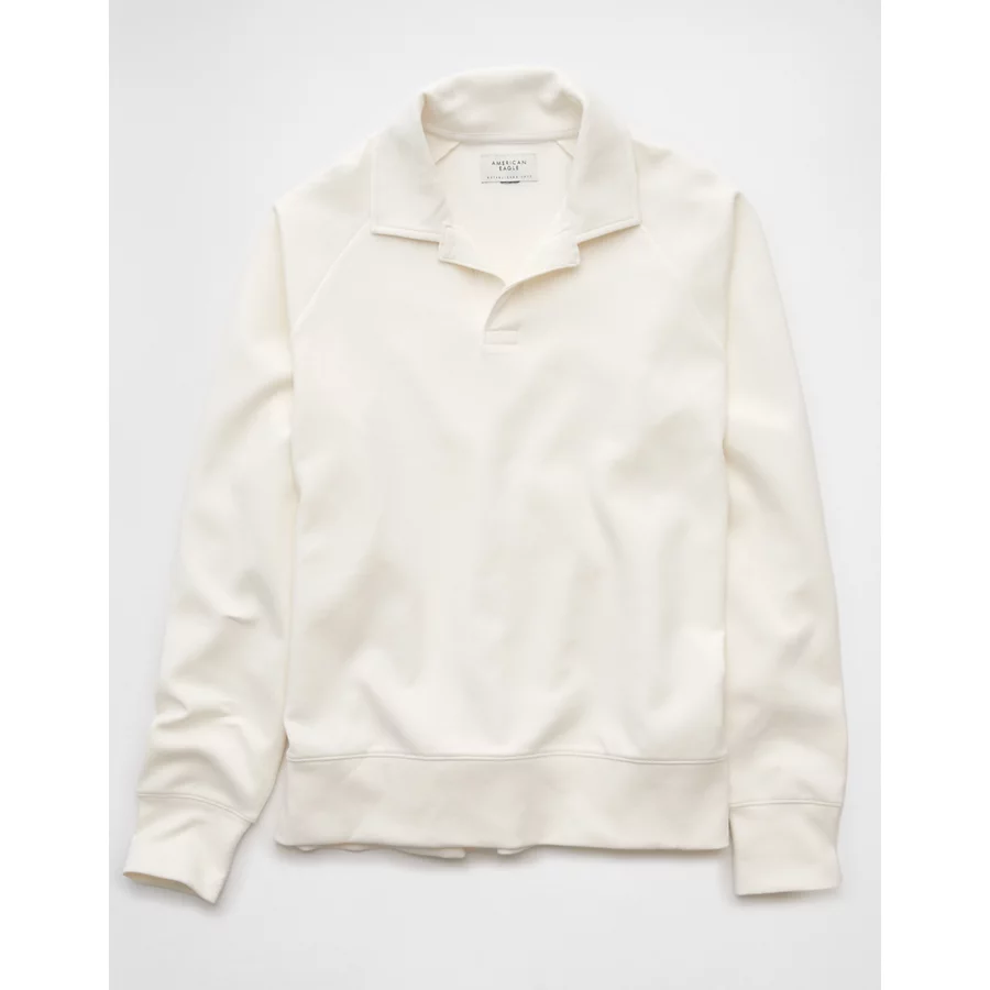 AE 24/7 Long-Sleeve Rugby Polo Sweatshirt – Raw White