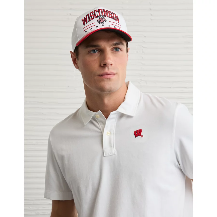 AE 24/7 Wisconsin Badgers Graphic Club Polo Shirt – White