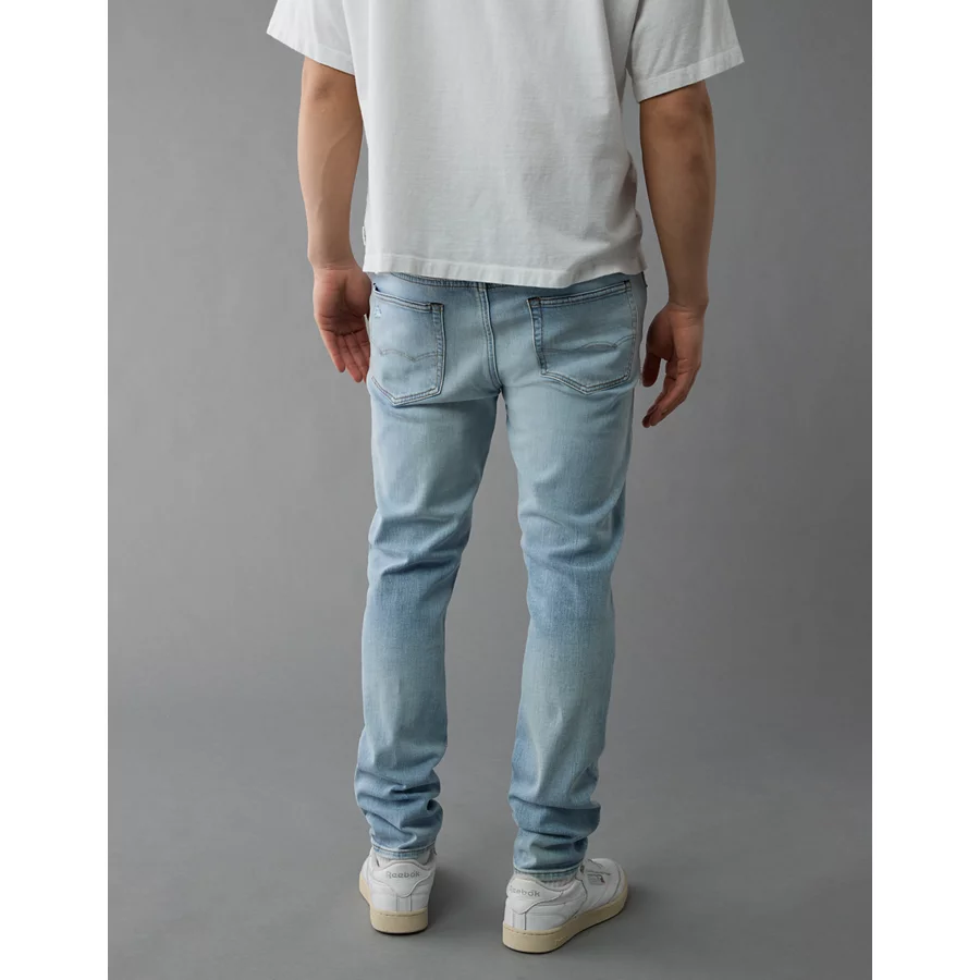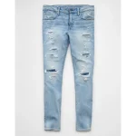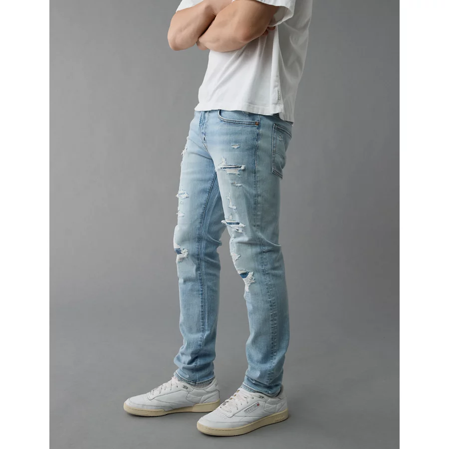 AE AirFlex+ Patched Skinny Jean – Destroyed Light Wash