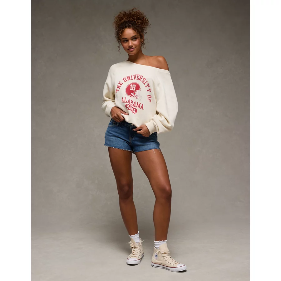 AE Alabama Crimson Tide Graphic Off The Shoulder Sweatshirt – Cream