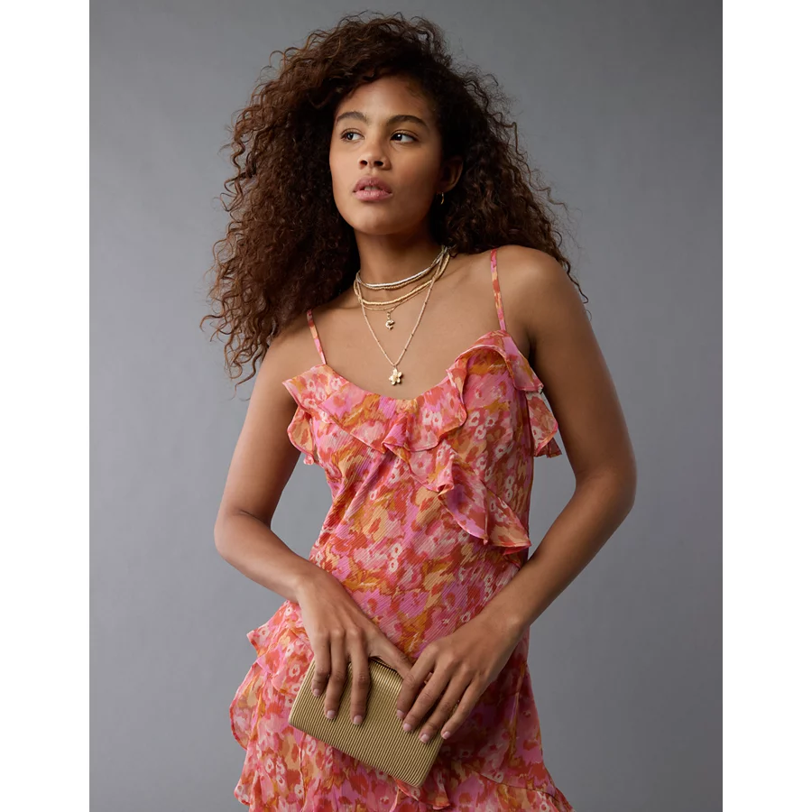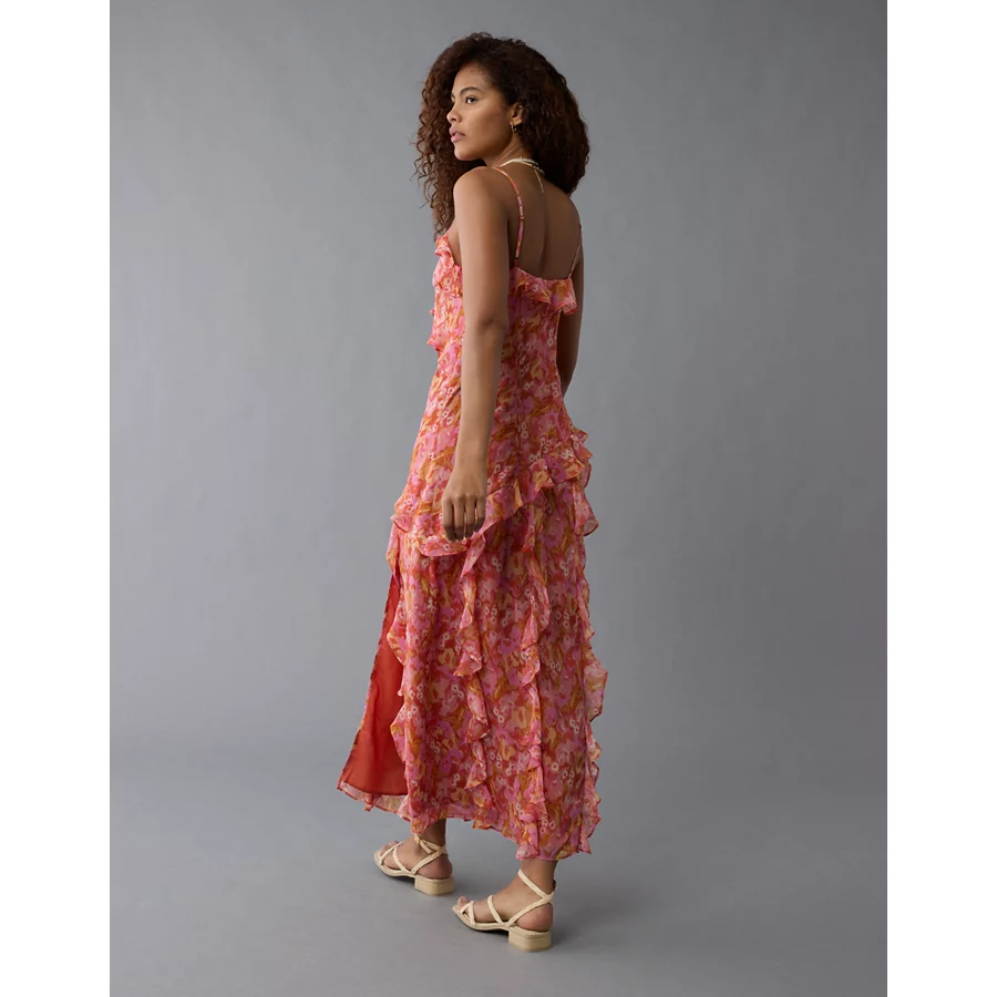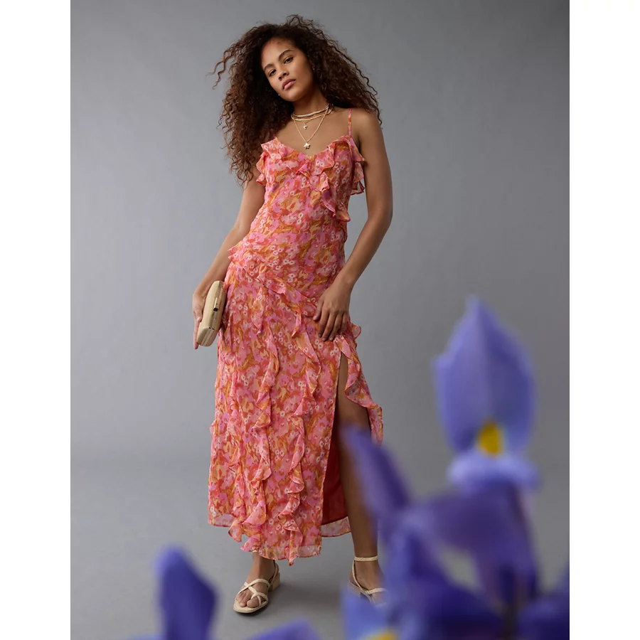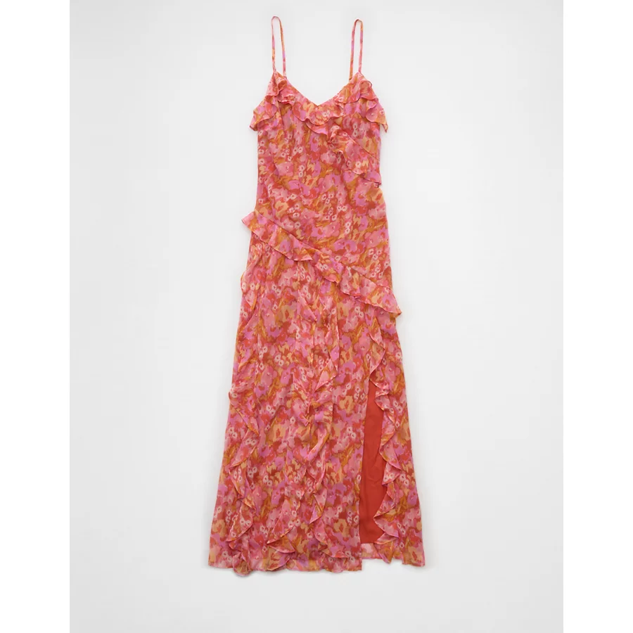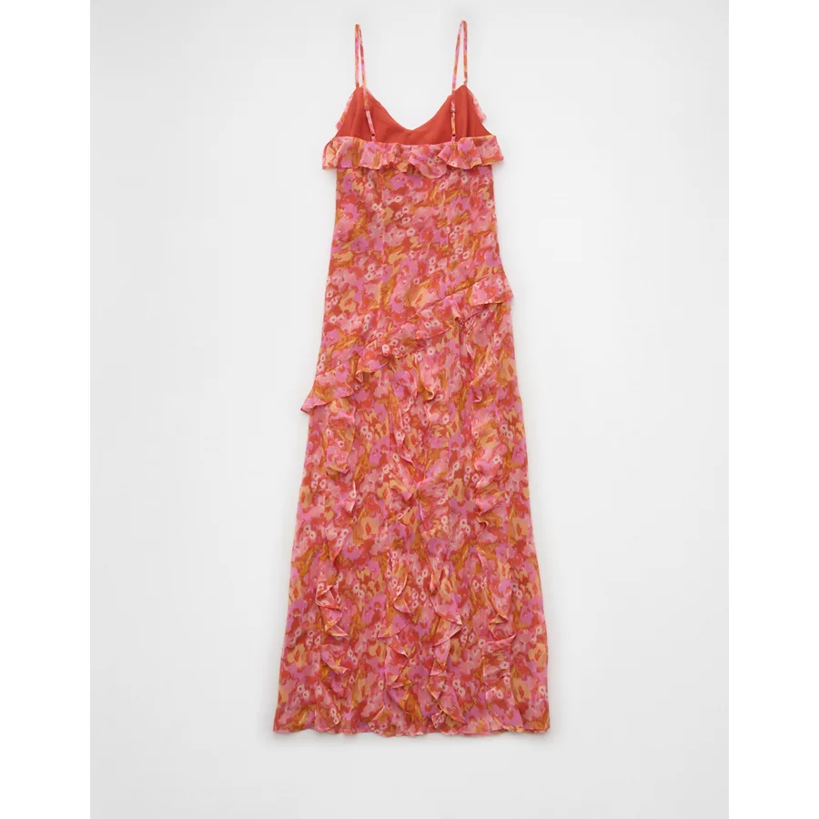 AE Asymmetrical Ruffle Maxi Slip Dress – Pink