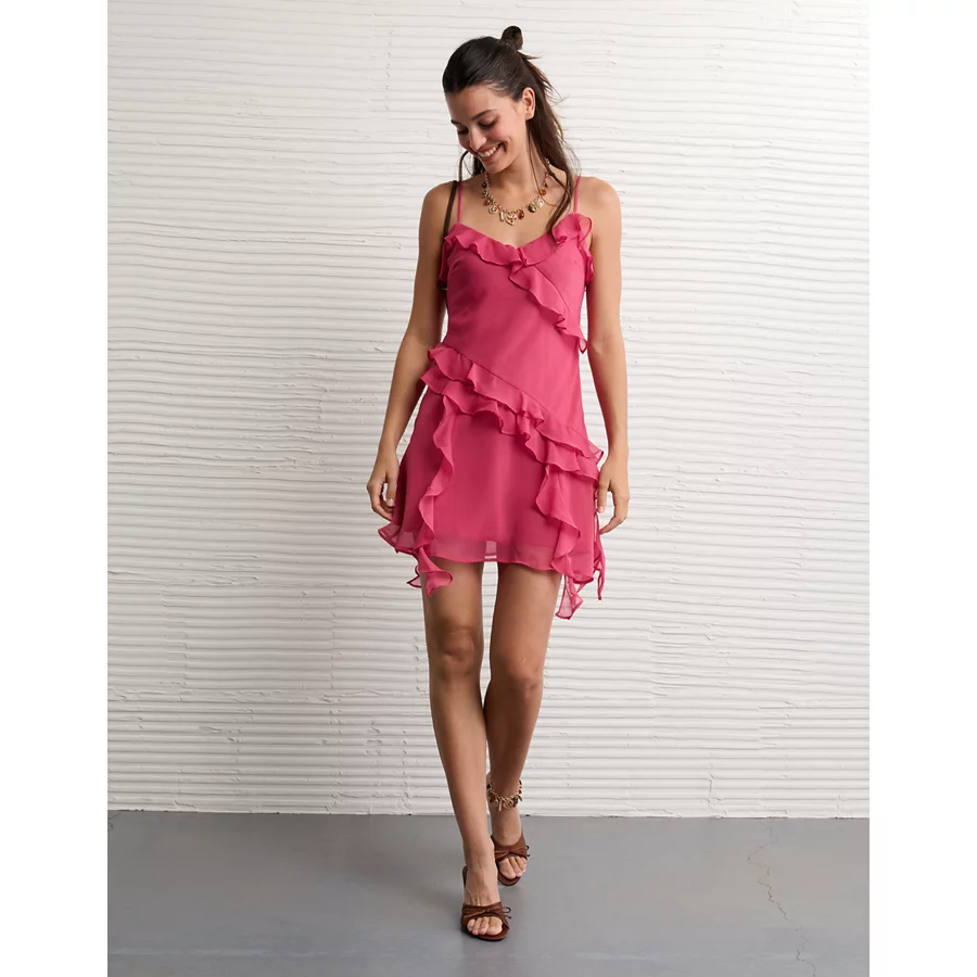 AE Asymmetrical Ruffle Mini Dress – Pink