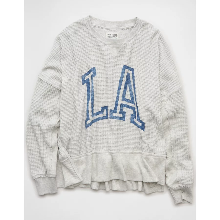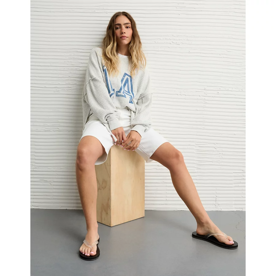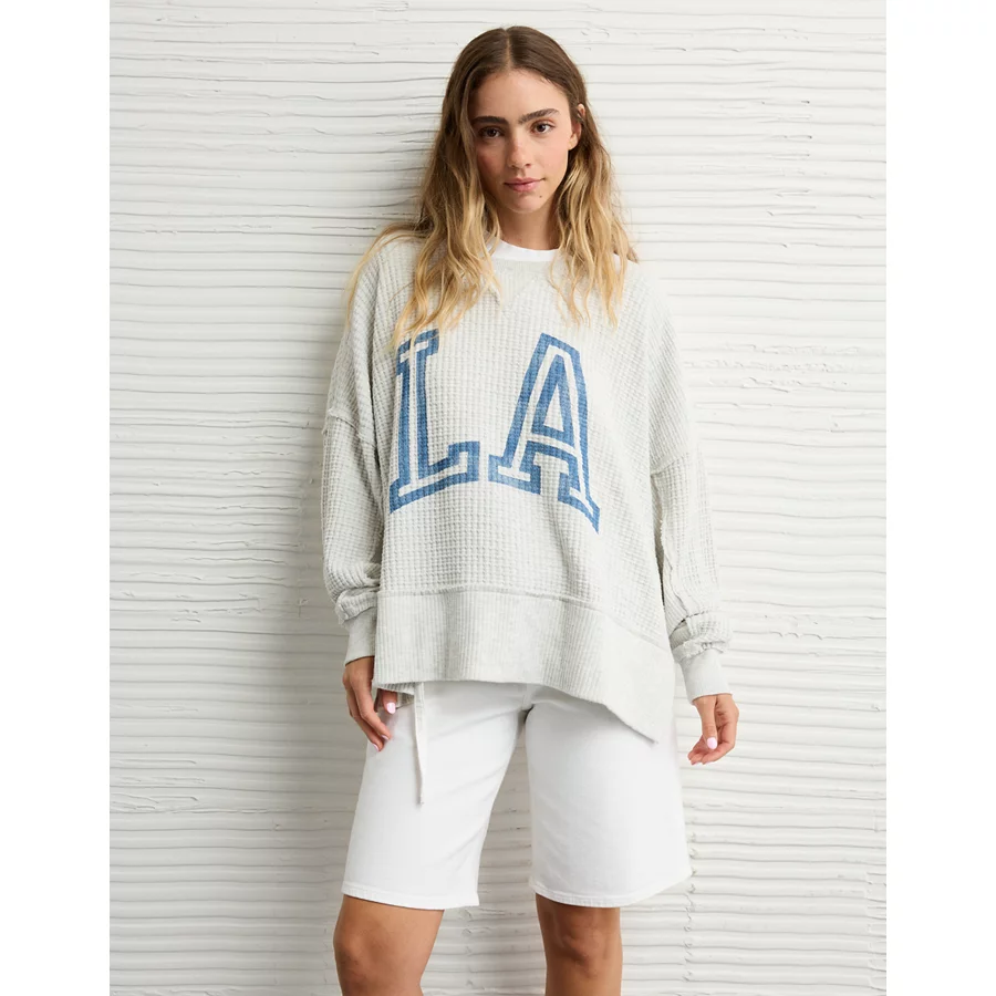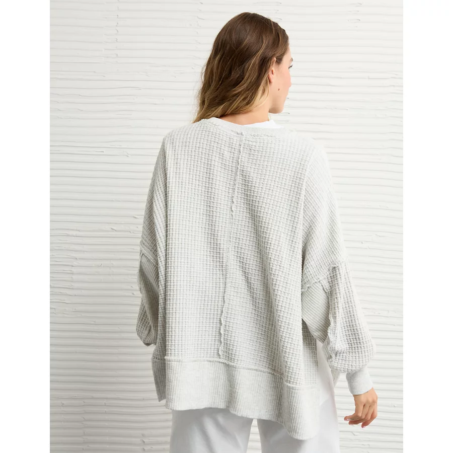 AE Big Hug Crew Neck Waffle Sweatshirt – Light Heather Gray