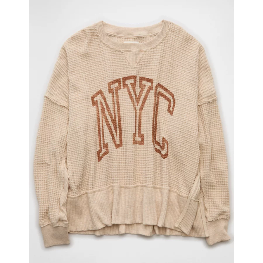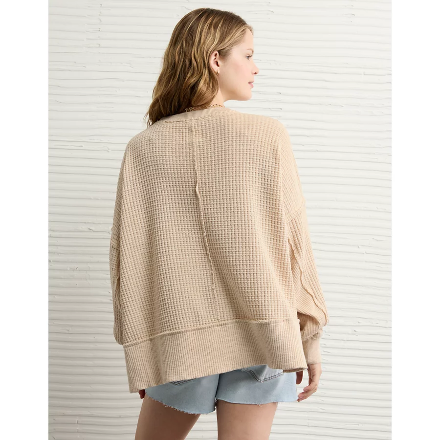 AE Big Hug Crew Neck Waffle Sweatshirt – Oatmeal Heather