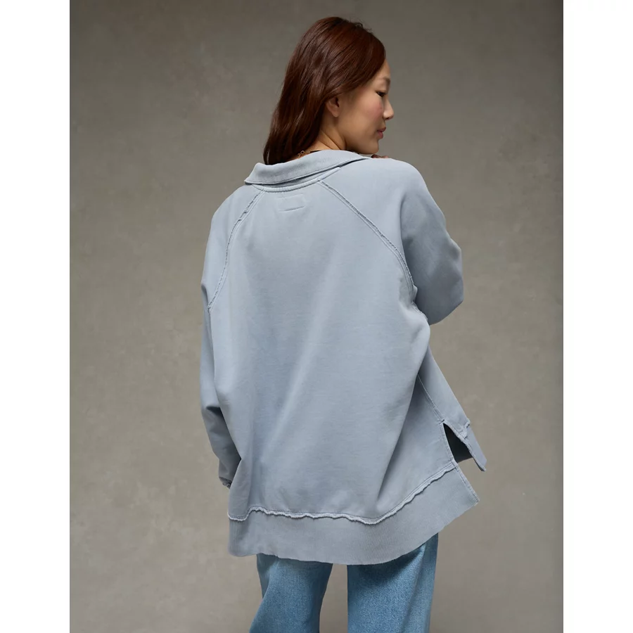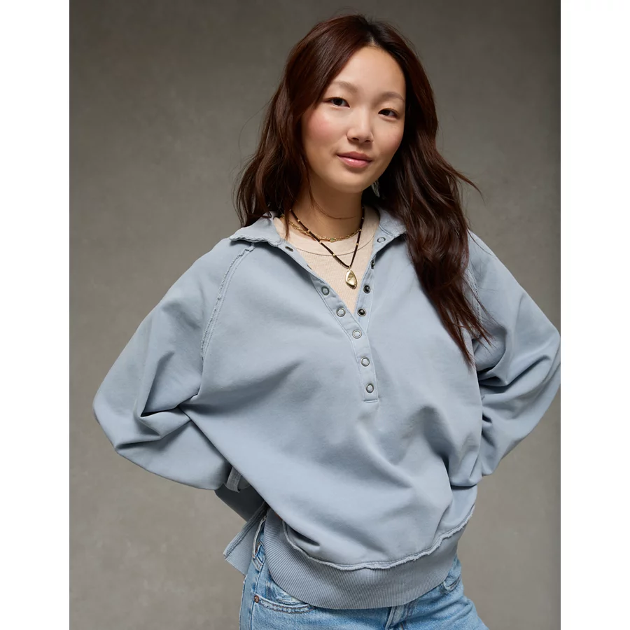 AE Big Hug Henley Sweatshirt – Powder Blue