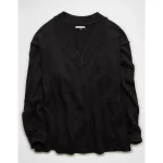 AE Big Hug Off-The-Shoulder Waffle Sweatshirt - Chocolate