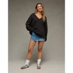 AE 8″ Dreamy Drape Stretch Low-Rise Baggy Jort – Medium Bright Indigo