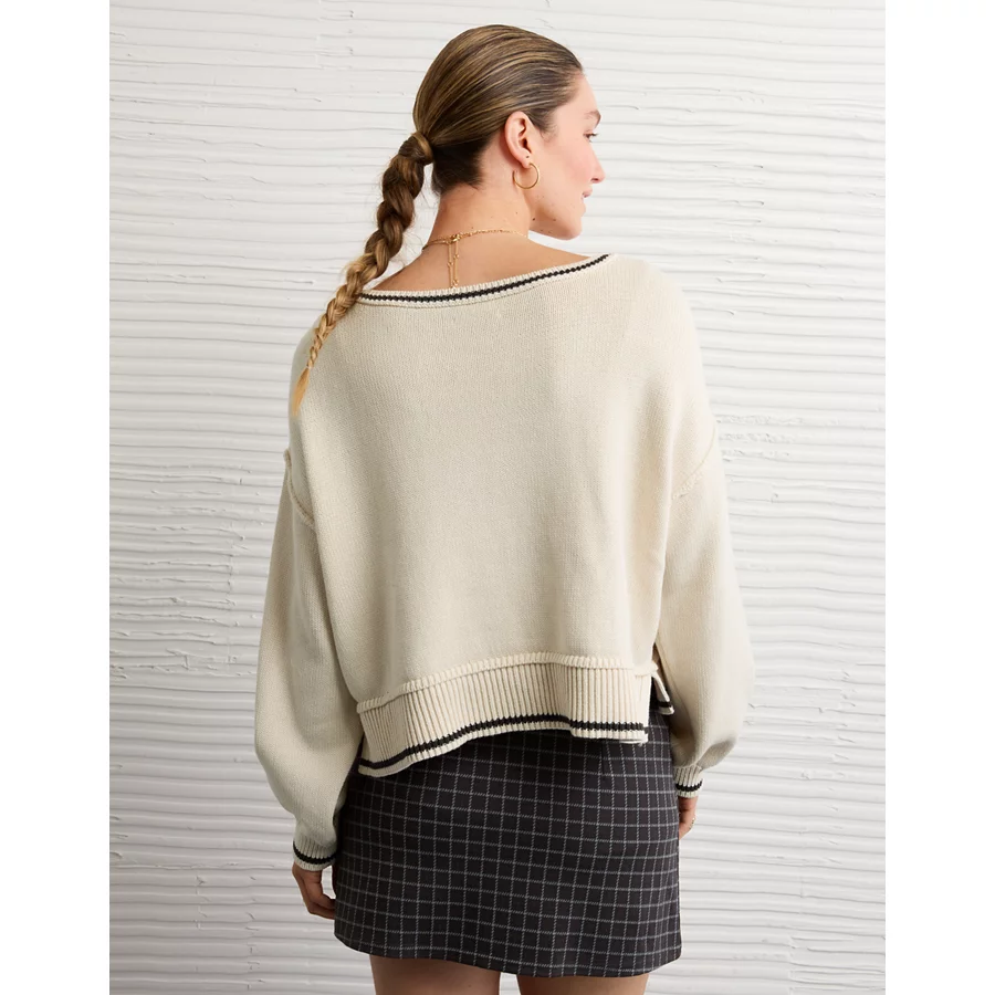 AE Boatneck Graphic Sweater – Cream