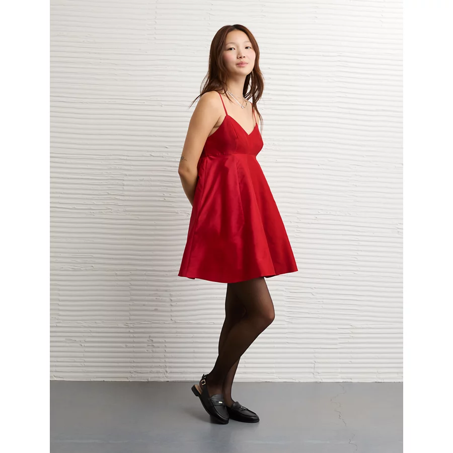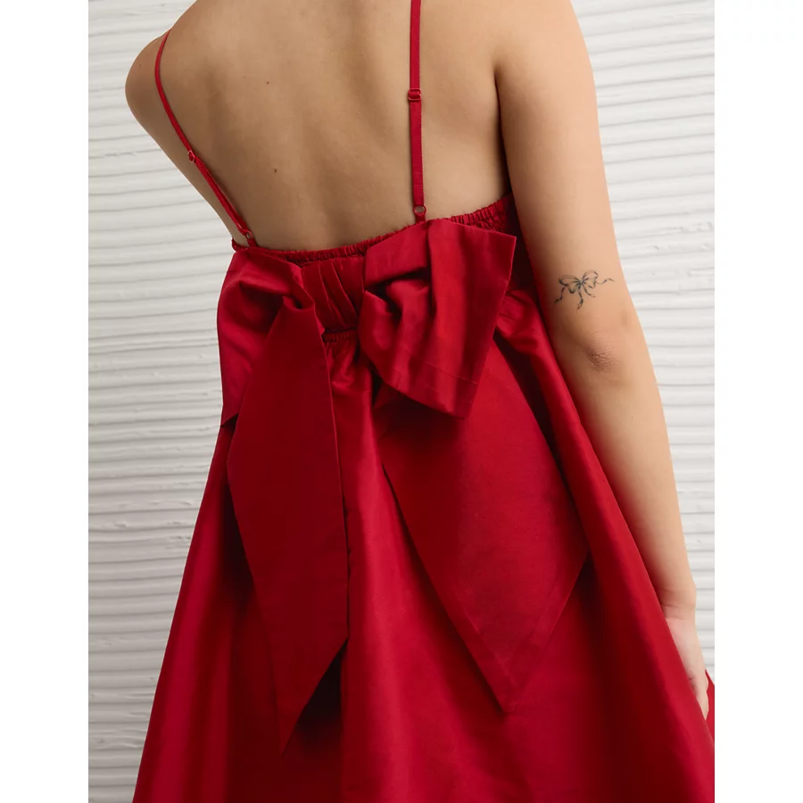 AE Bow Back Babydoll Mini Dress – Warm Red