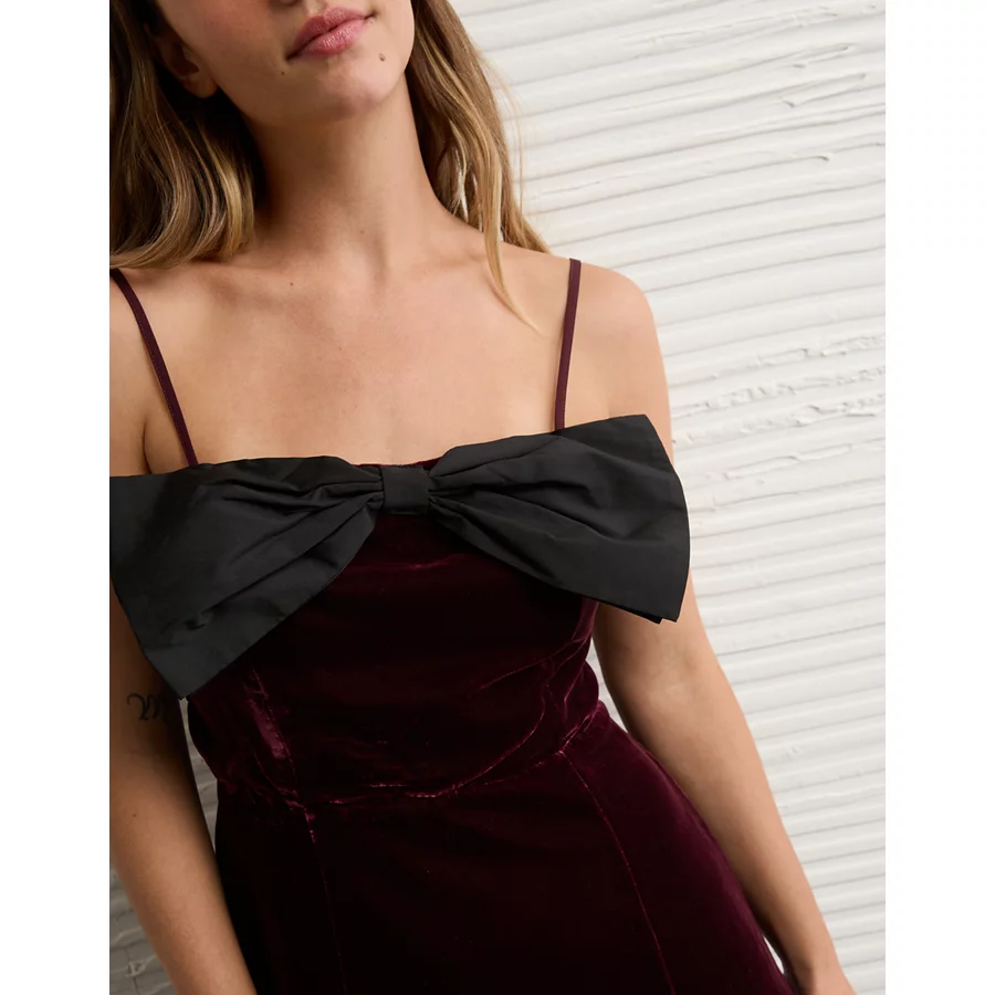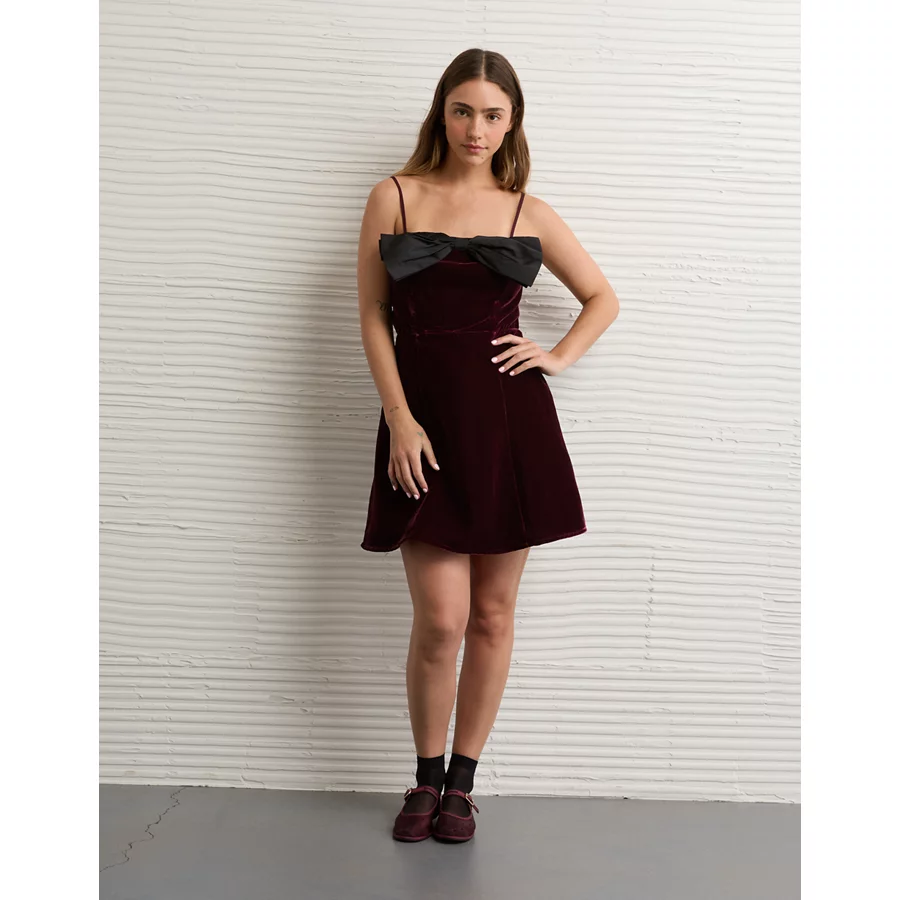 AE Bow Front Mini Dress – Burgundy