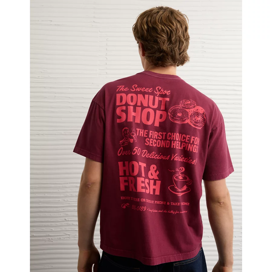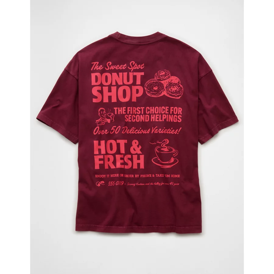 AE Boxy Food Graphic T-Shirt – Burgundy