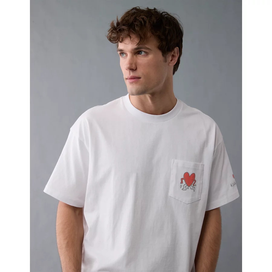AE Boxy Keith Haring Graphic T-Shirt – White