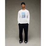 AE Boxy Long Sleeve Snoopy Graphic T-Shirt - Air White