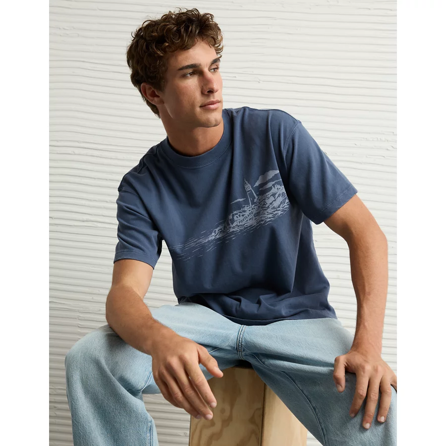 AE Boxy Nautical Graphic T-Shirt - Soft Blue