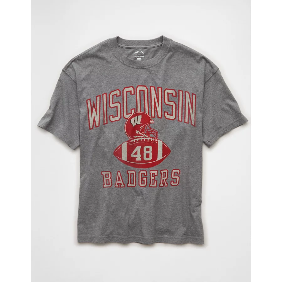 AE Boxy Wisconsin Badgers Graphic T-Shirt – Gray Heather