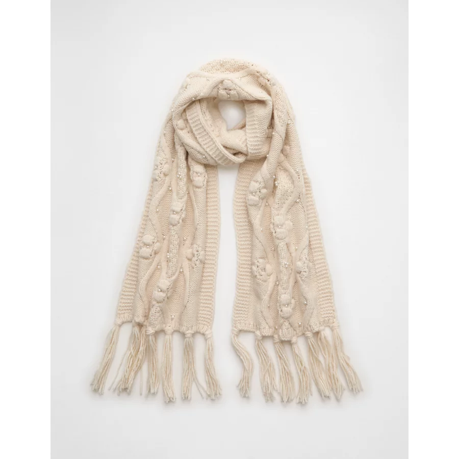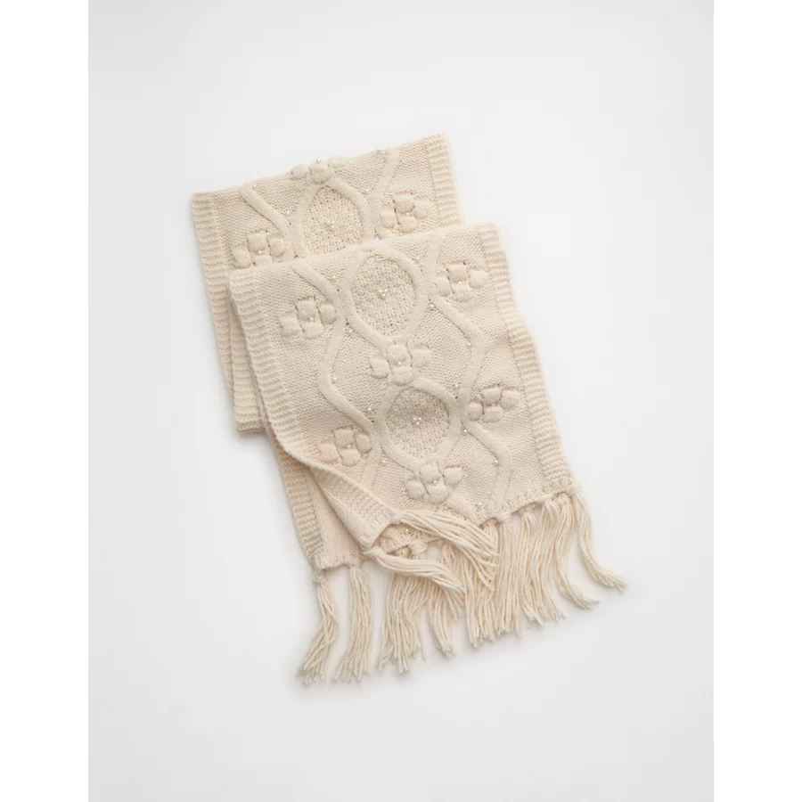 AE Cable Knit Scarf – Cream