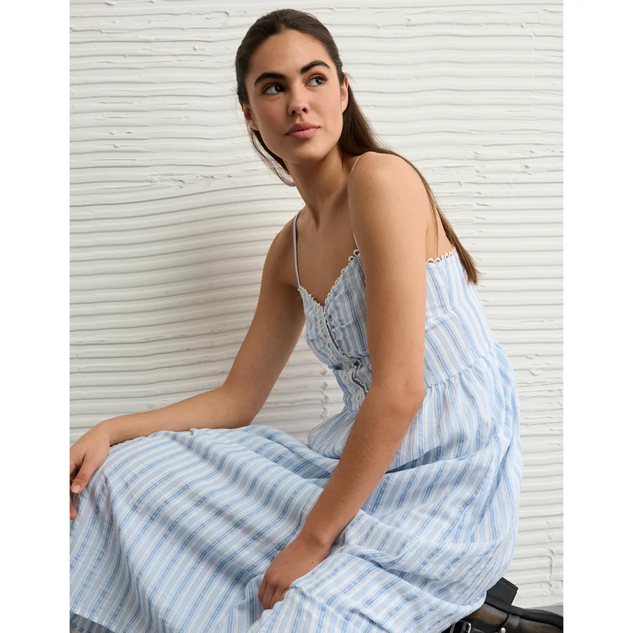 AE Catie Corset Button-Up Midi Dress – Cream