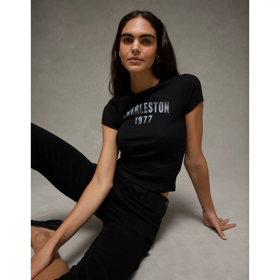 AE Charleston Graphic Hey Baby Tee – Black