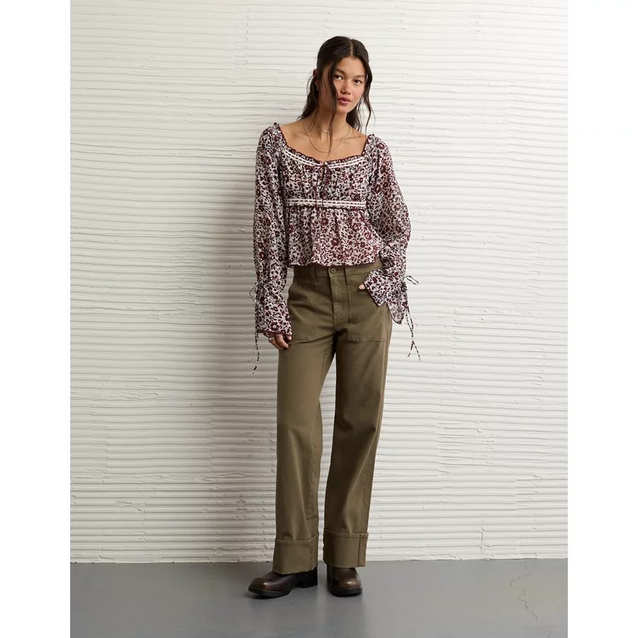 Lightweight fabric with stretchTrouser-inspired pocket stylingPleated front 63% Recycled Polyester, 33% Viscose, 4% SpandexMachine washImported 11 high riseRelaxed fit6 inseam